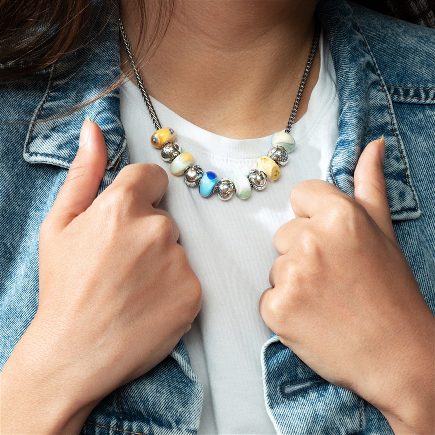 • As a rule, we recommend that you avoid contact with perfumes, creams (including hand creams), soaps, cosmetics, and hair lacquer, etc. As mentioned above, never allow your beads to be in contact with chemical detergents or bleach.
