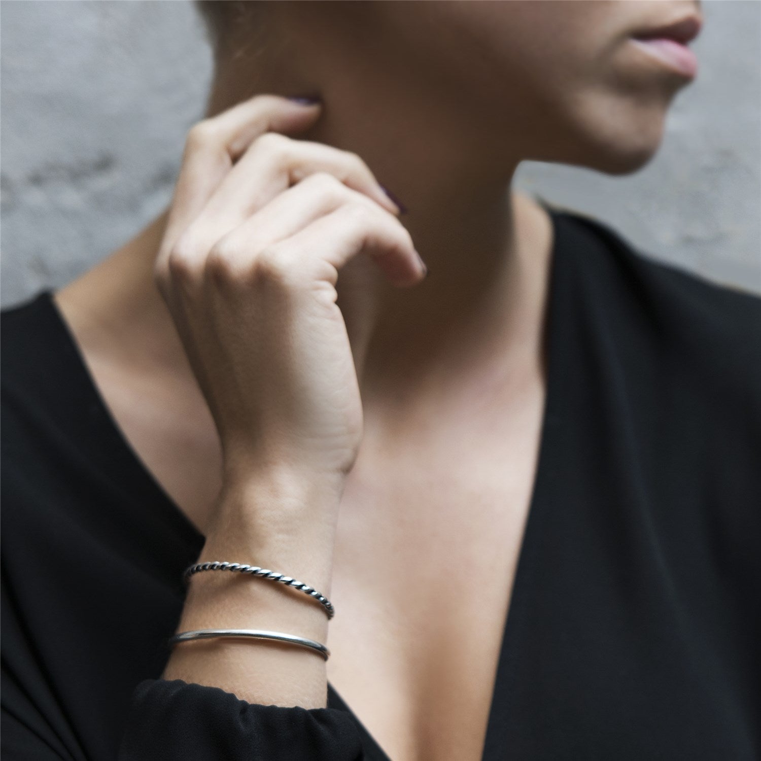 Our bracelet is available in three different metals: Copper, 925 Sterling Silver og 18k gold plated and the bangles are available in several styles: Silver bangle, Twisted bangle, Heart bangle and Star bangle.