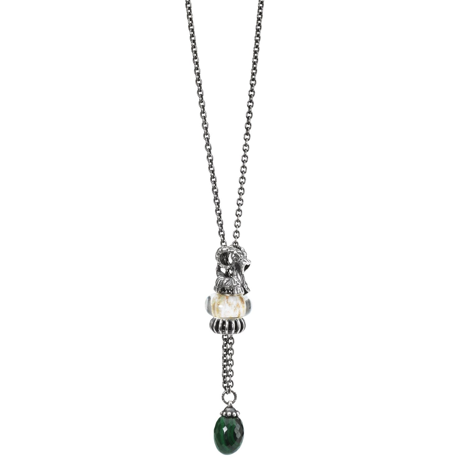 This lockless chain is fitted with a malachite gemstone. Trollbeads may be mounted above the gemstone without the use of tools.