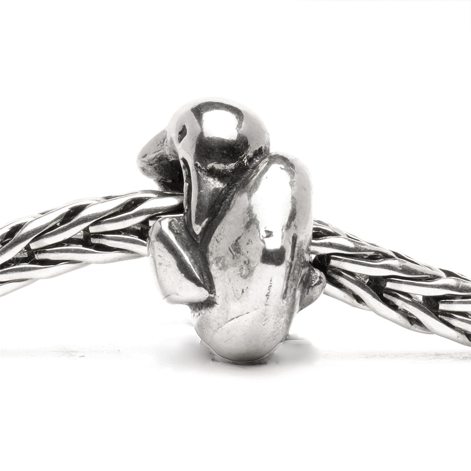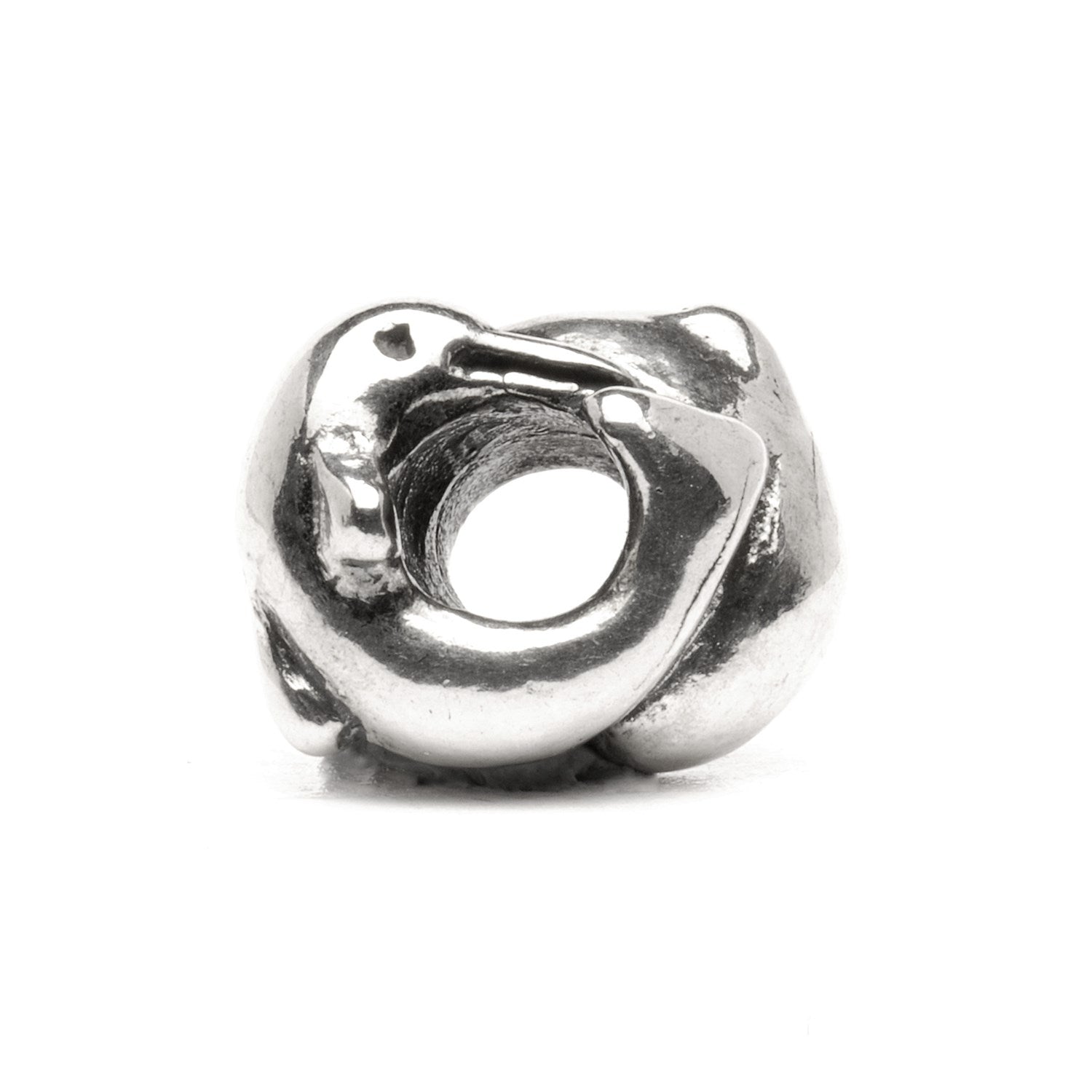 Just as the lucky ship has dolphins dancing in the weaves of the bow, these two dolphins dart around this silver bead in joyous play. Dolphins are venerated and adored in many cultures.