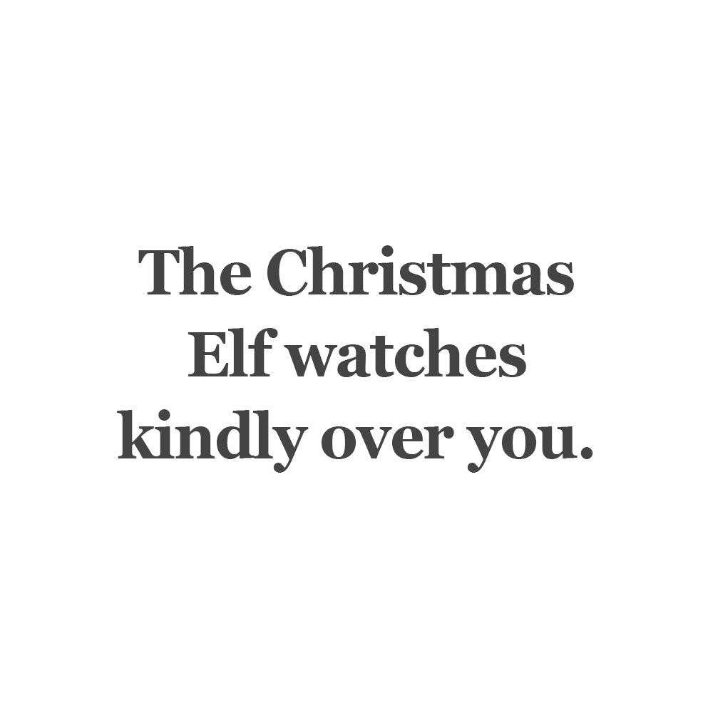 The Christmas Elf watches over you, encouraging togetherness and harmony.