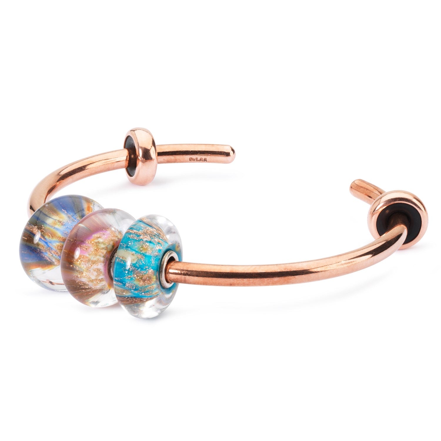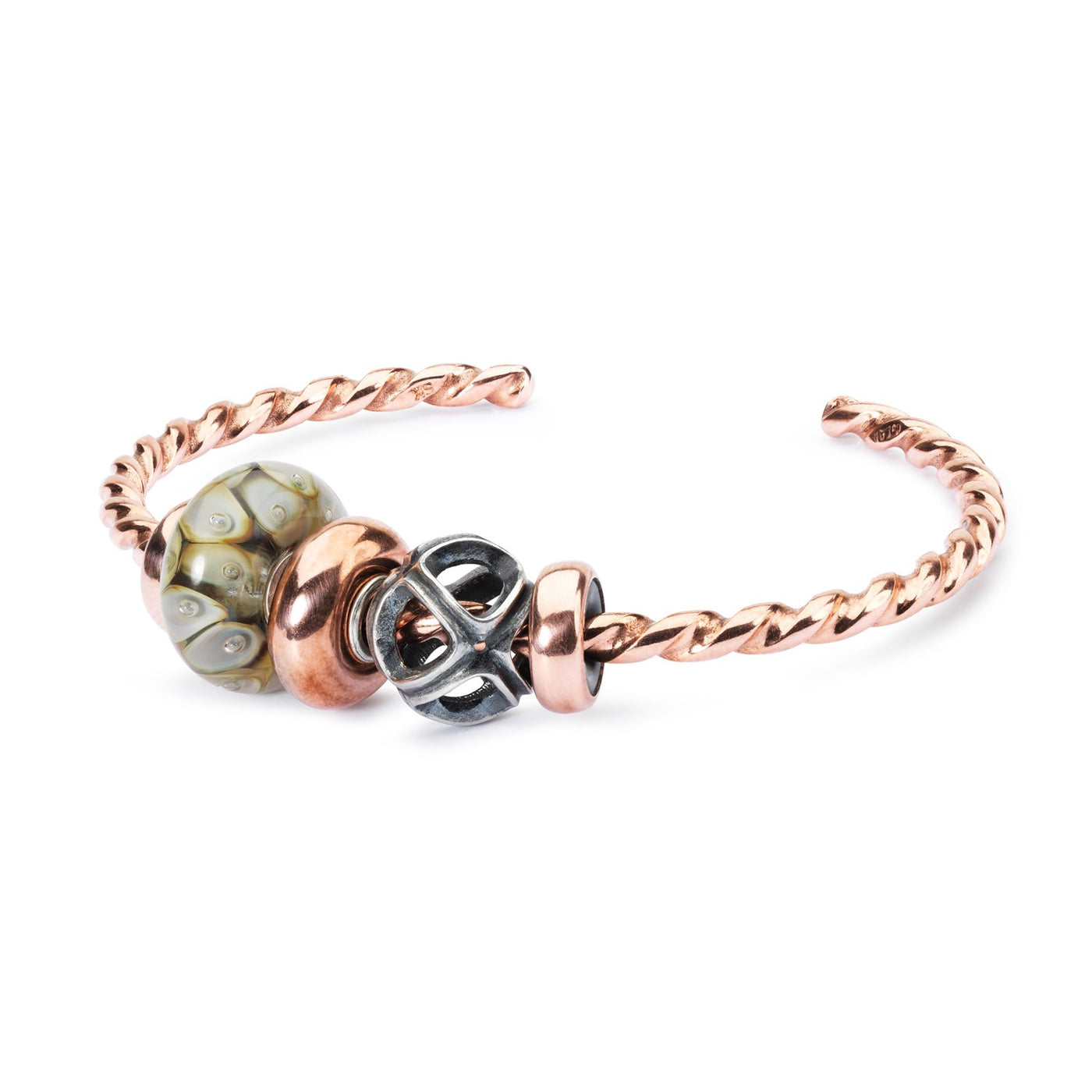 Simple spacer made of copper that contains rubber inside to prevent beads from rolling of your bracelet. Providing a warm and rustic touch to your Trollbeads jewelry.