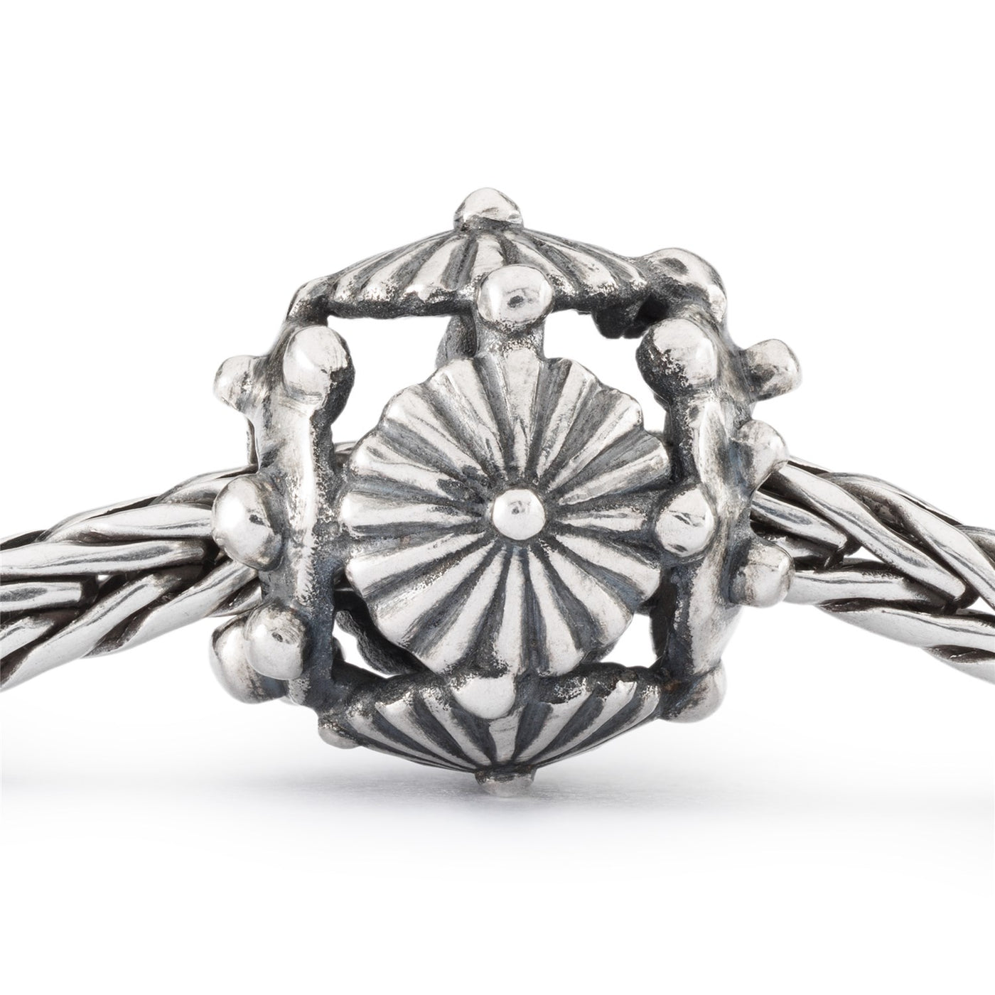 A whimsical bead featuring a daisy flower design in sterling silver, adds a playful and cheerful touch to your bracelet.