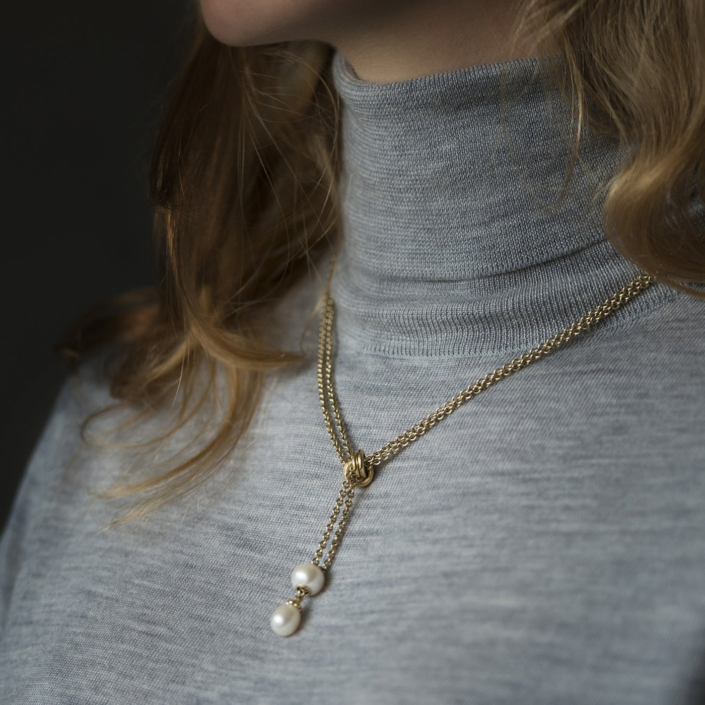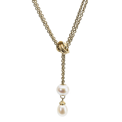 This lockless chain, is fitted with a lovely pearl pendant. It is possible to mount Trollbeads above the pearl, without the use of tools.