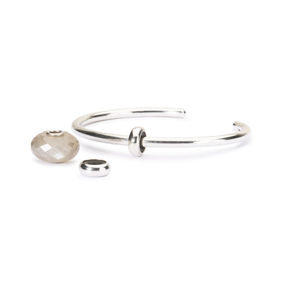 The Sterling Silver Grey Moonstone Bangle Showcases a Grey Moonstone Gemstone Bead.This bangle is only the beginning of your story, the Grey Moonstone can be changed after you liking.