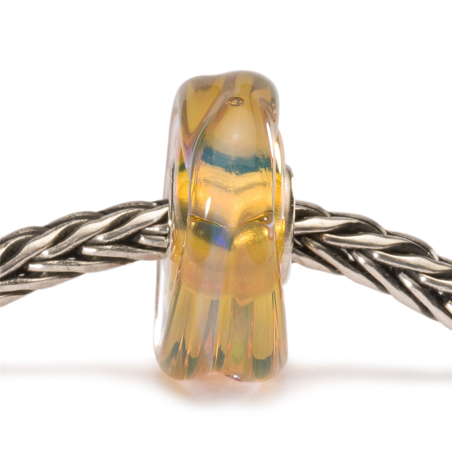 The flowing layers of this golden bead catch the warm rays of the morning sun.