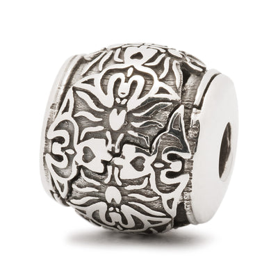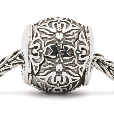 Inspired by M. C. Escher’s work, a bead with angels and demons. The silhouette of an angel doubles as the silhouette of a demon. Can you see where one ends and the next begins?