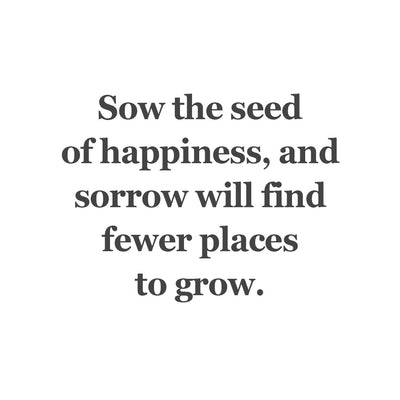 Sow the seed of happiness, and sorrow will find fewer places to grow.