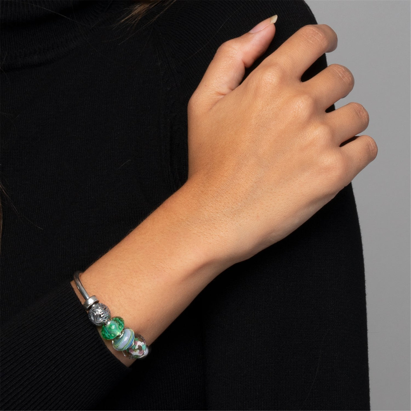 Sterling silver bangle, providing a classic and elegant foundation for your Trollbeads bracelet.